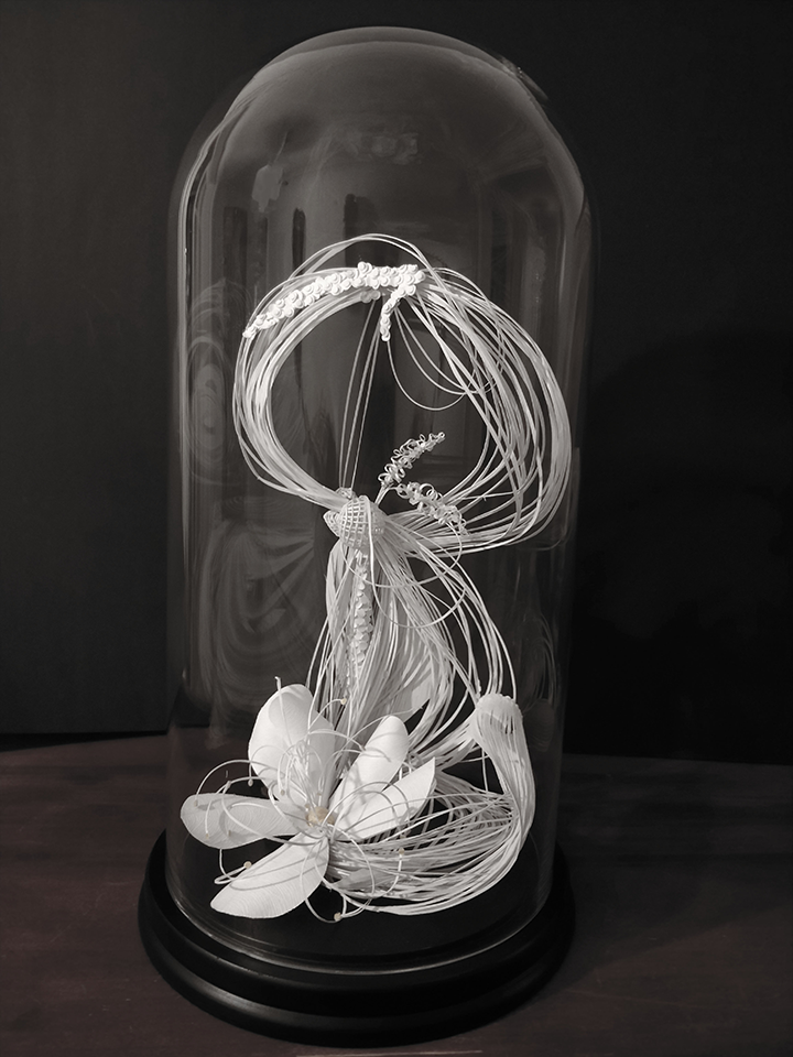 Dimensions 42 cm de haut diamètre 23 cm (sous cloche en verre)